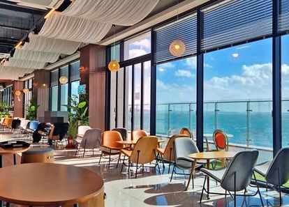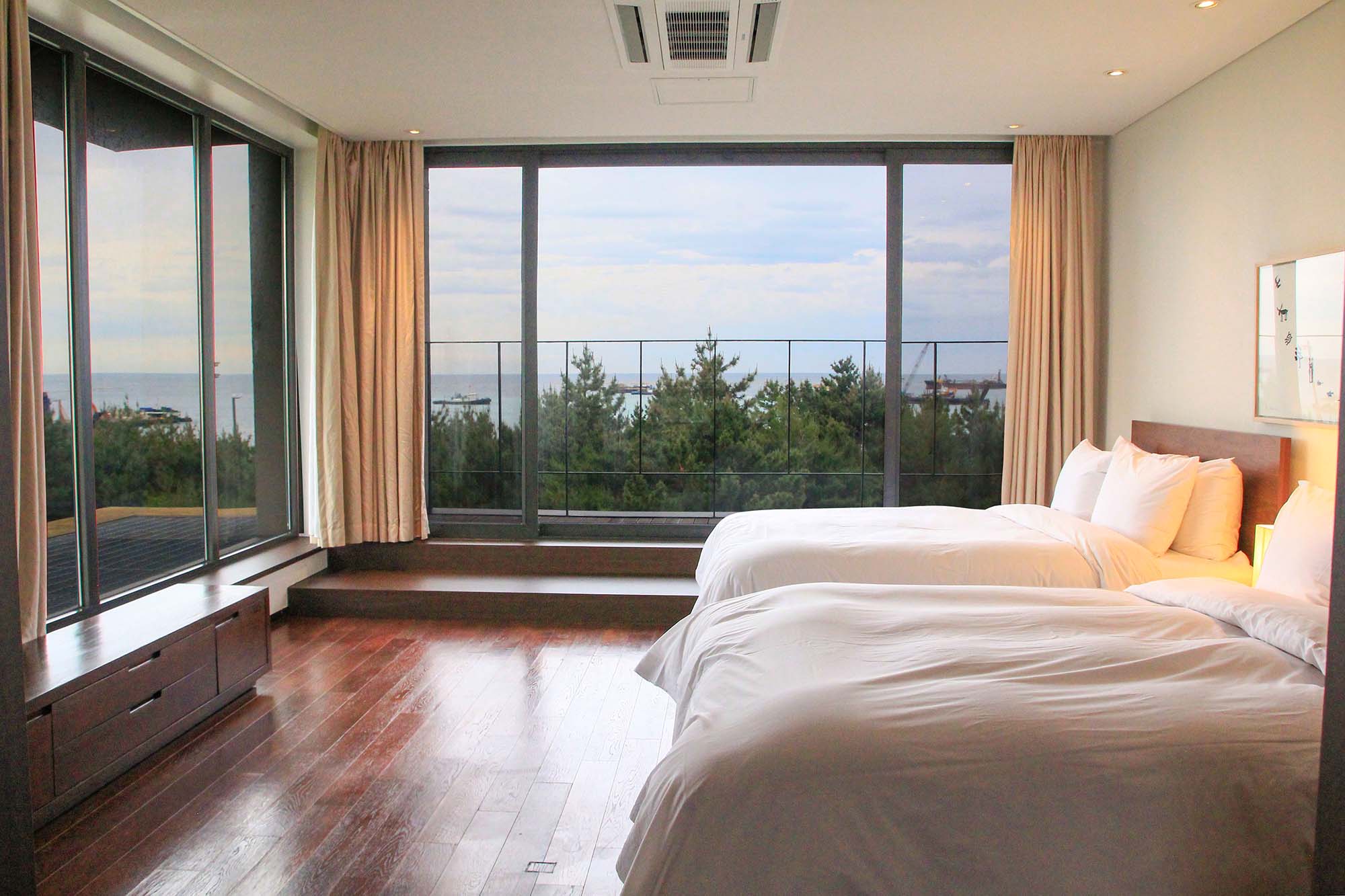 바다 위에 떠 있는 듯한 착각을 주는 탁 트인 오션뷰 공간입니다.