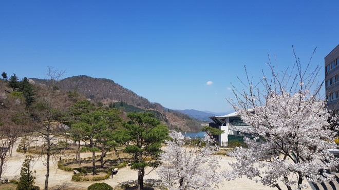 야외 계단들이 있는 대운동장이 있어 야외 팀활동을 할 수 있어요.