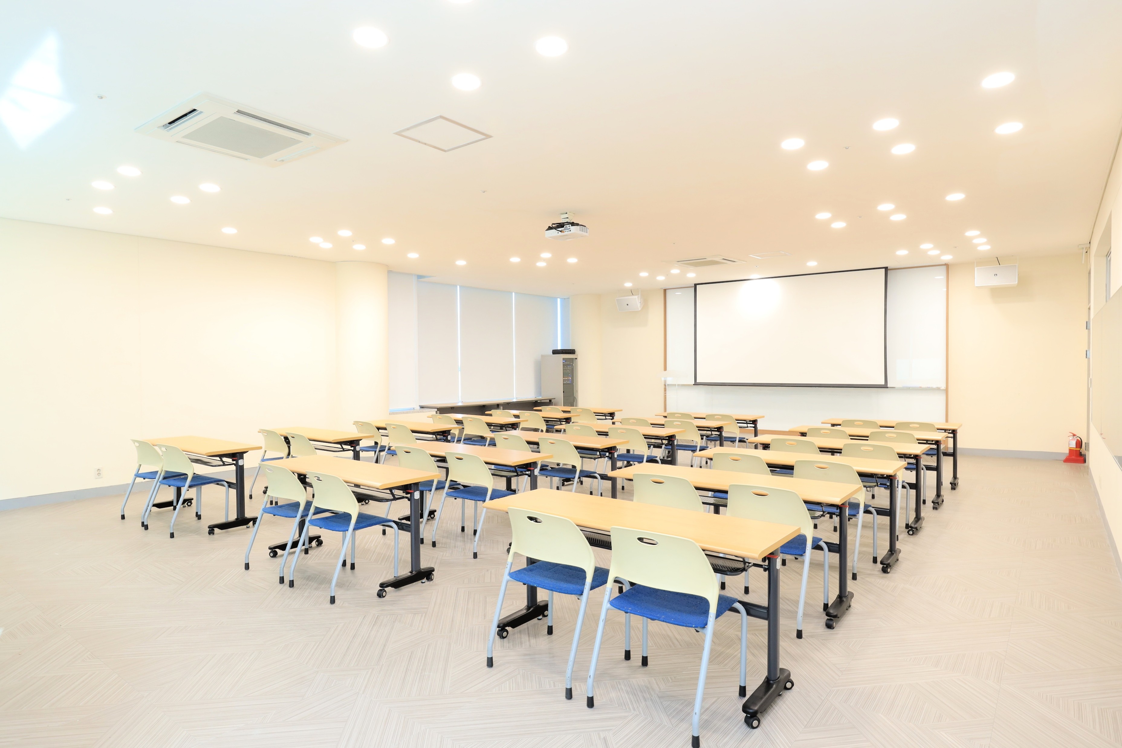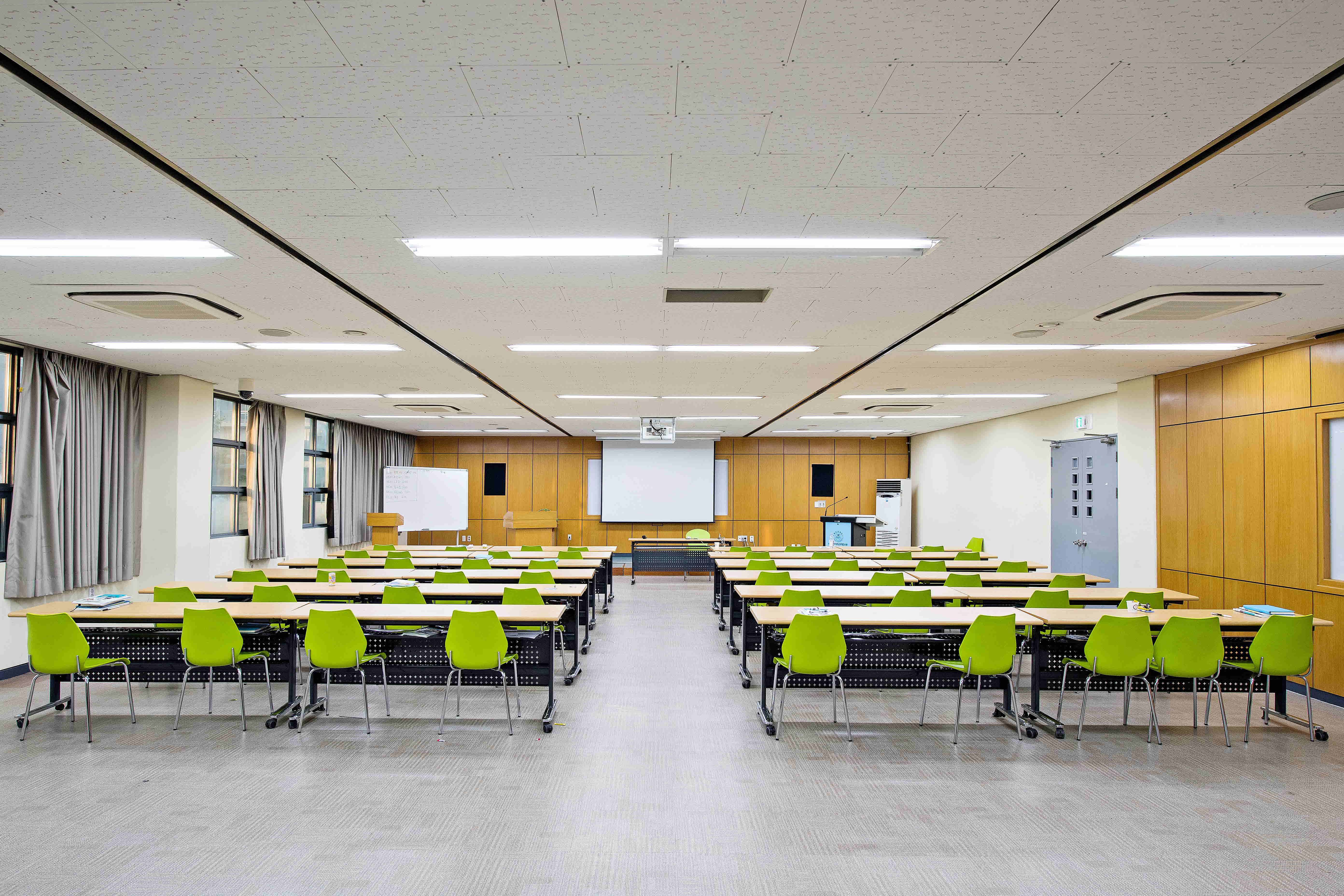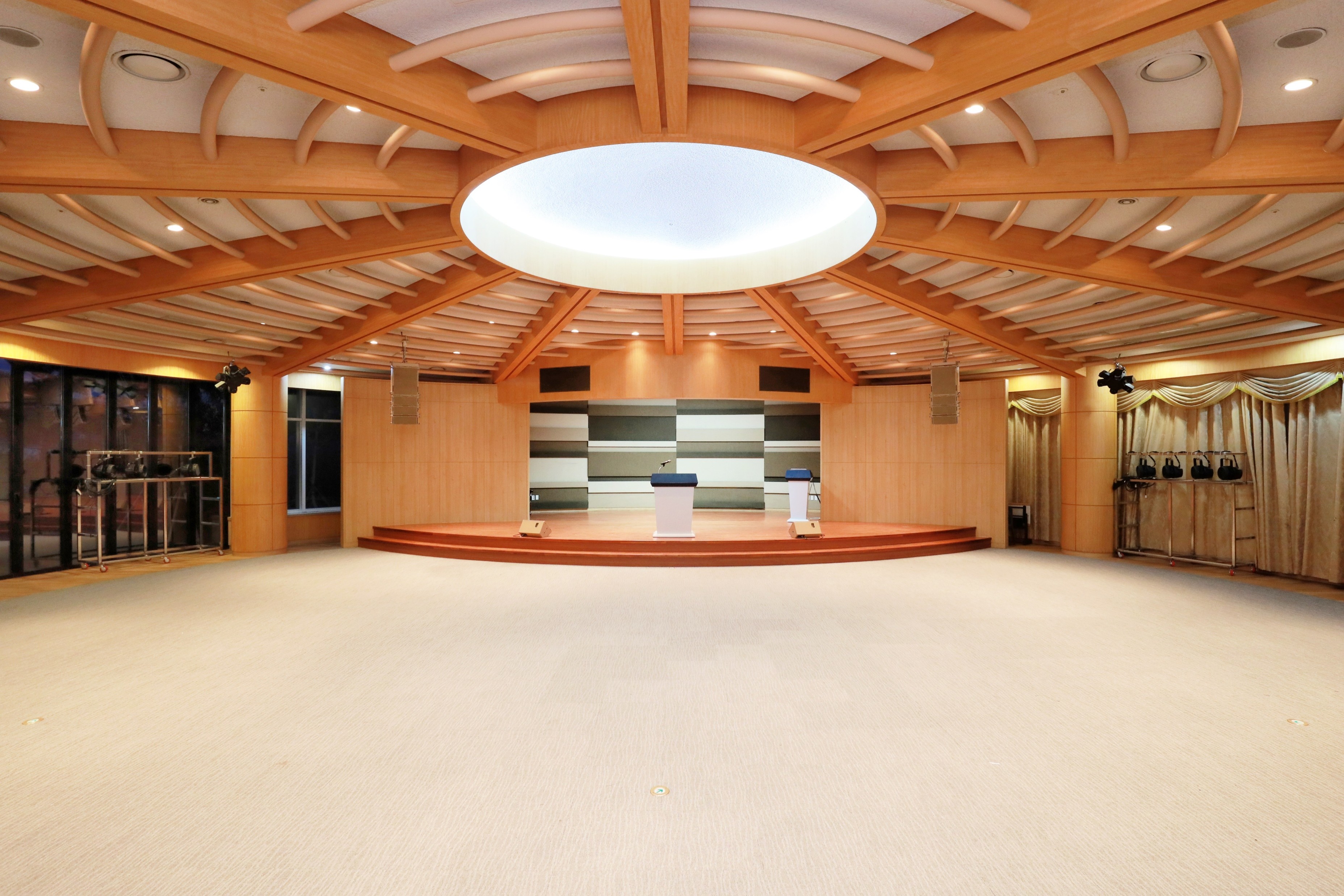 150명이 함께 모일 수 있는 실내 강당으로, 레크레이션과 팀빌딩 활동에 적합합니다