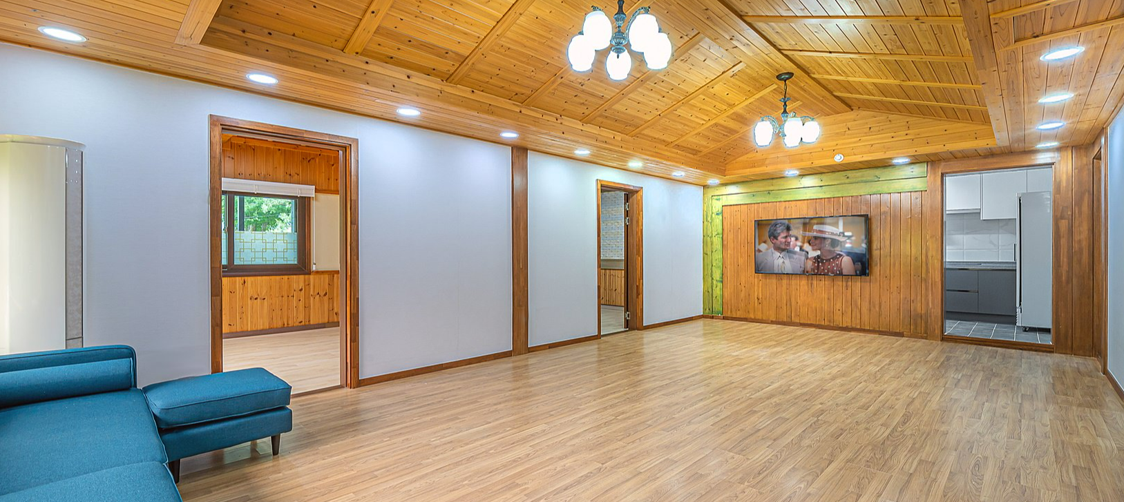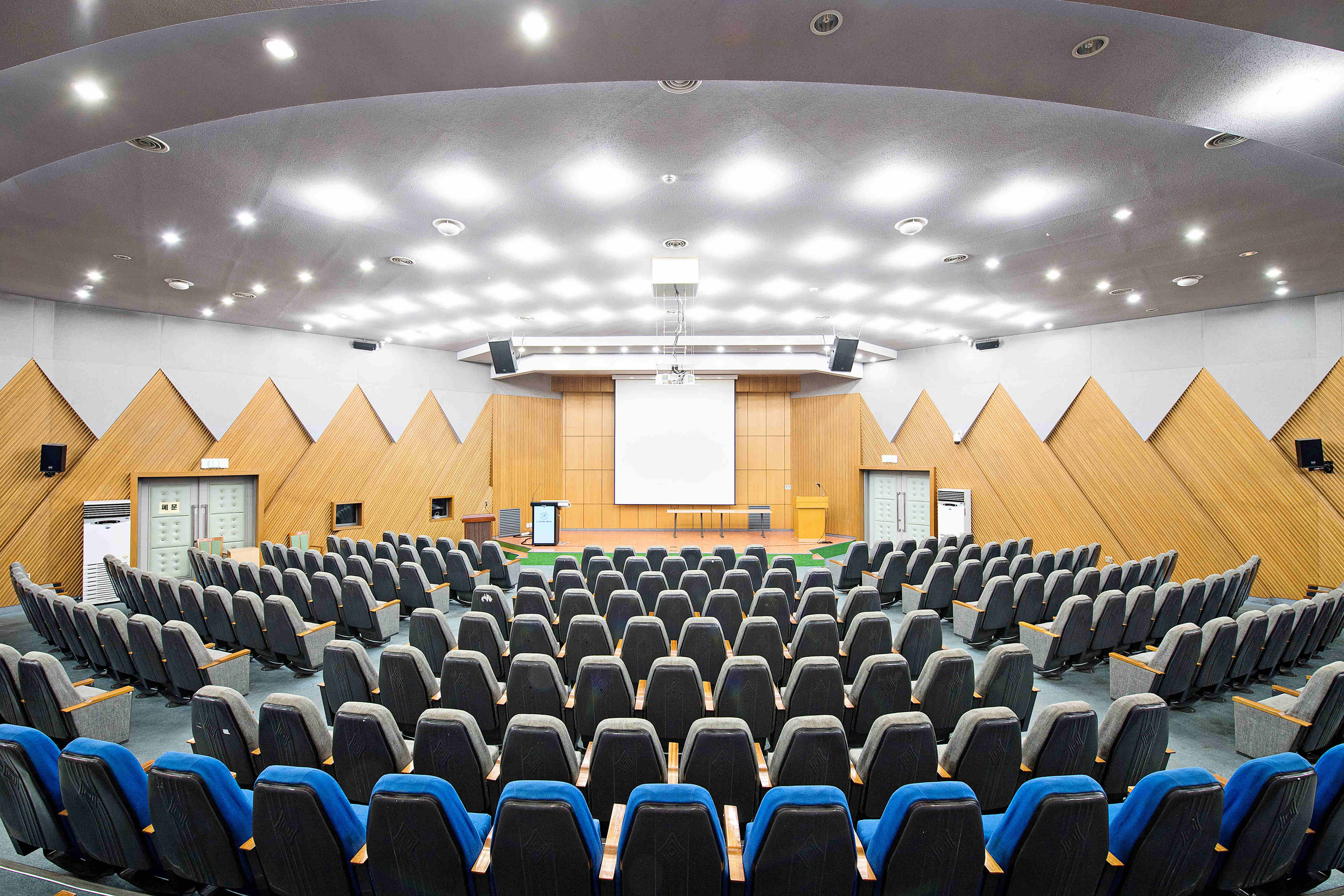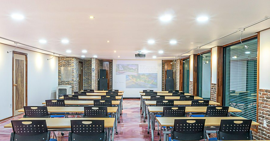 150명이 함께 모일 수 있는 실내 강당으로, 레크레이션과 팀빌딩 활동에 적합합니다