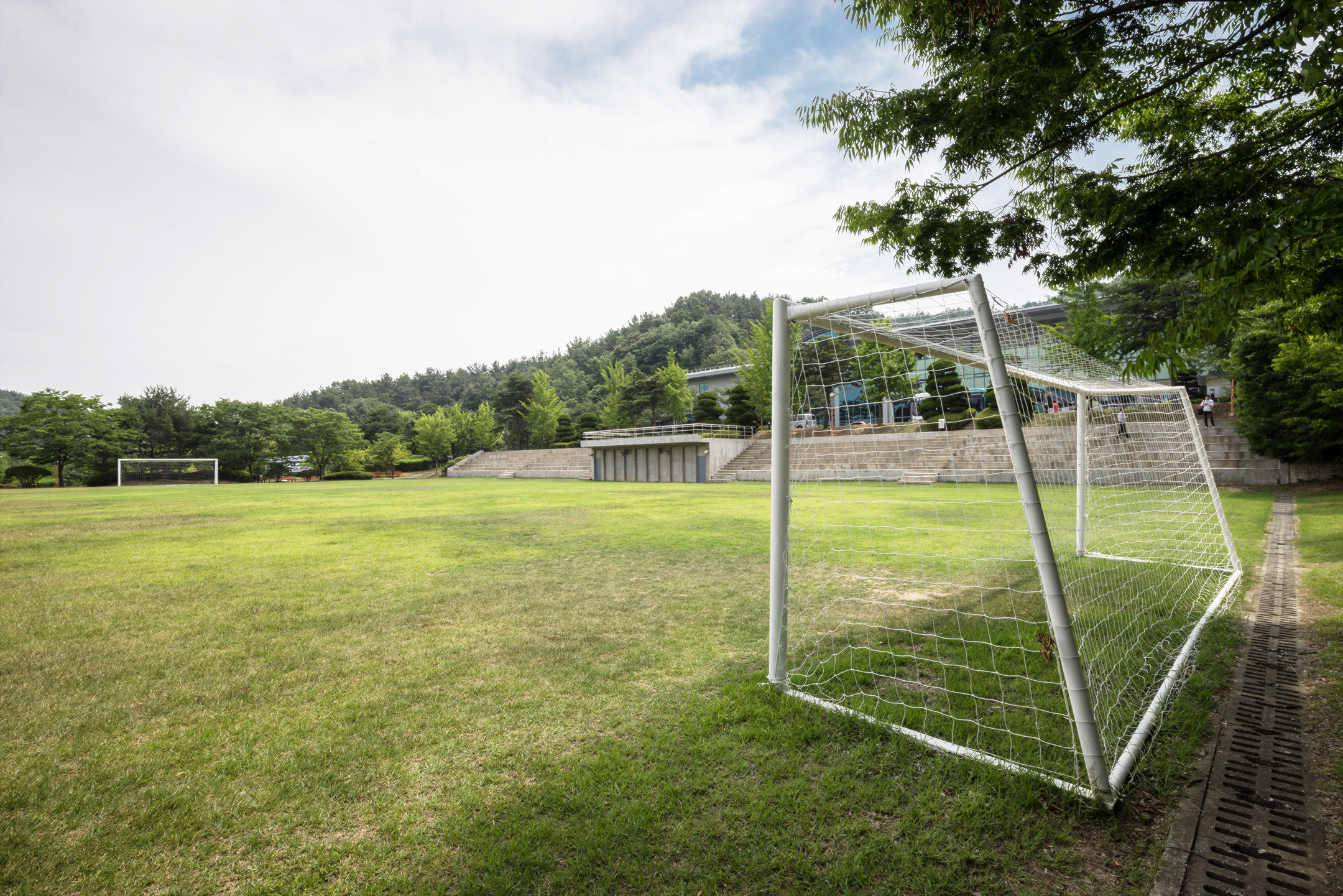 깨끗한 잔디 운동장과 50명, 20명 규모의 실내 GX룸을 보유하고 있어요. 인근 실내 풋살장도 이용 가능해요.