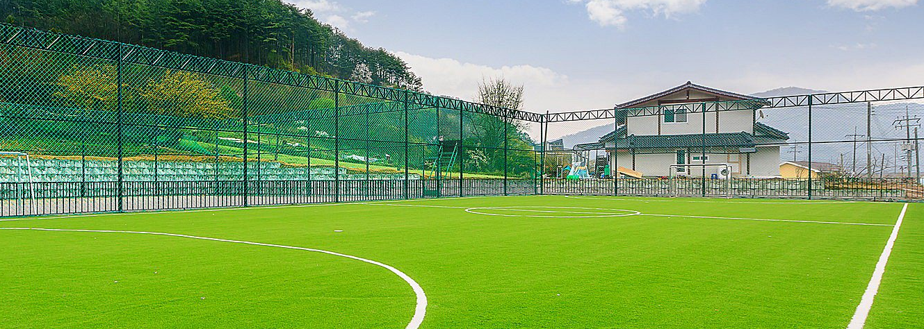 1800평 규모의 야외 운동장에서 최대 500명이 단체 체육 활동을 할 수 있습니다.