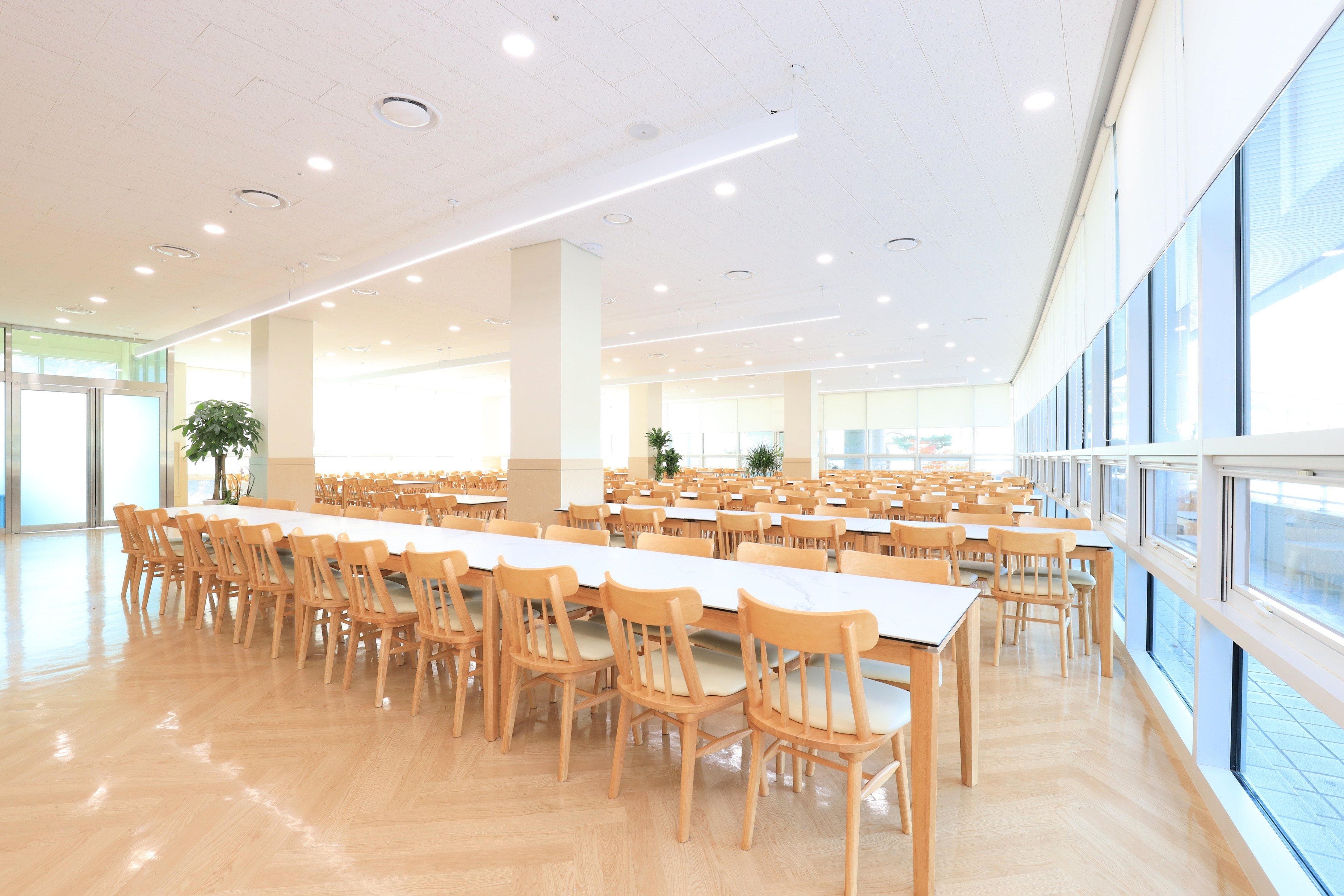 달리기 트랙이 있는 야외 운동장, 구기 종목 코트(농구, 배구)가 있는 실내 체육관이 있어 사내 명랑 운동회를 할 수 있어요.