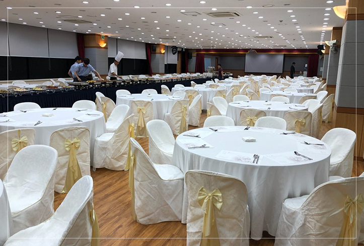 관람석이 있는 대형 실내 체육관으로, 날씨와 상관없이 최대 1200명 행사를 진행할 수 있어요.