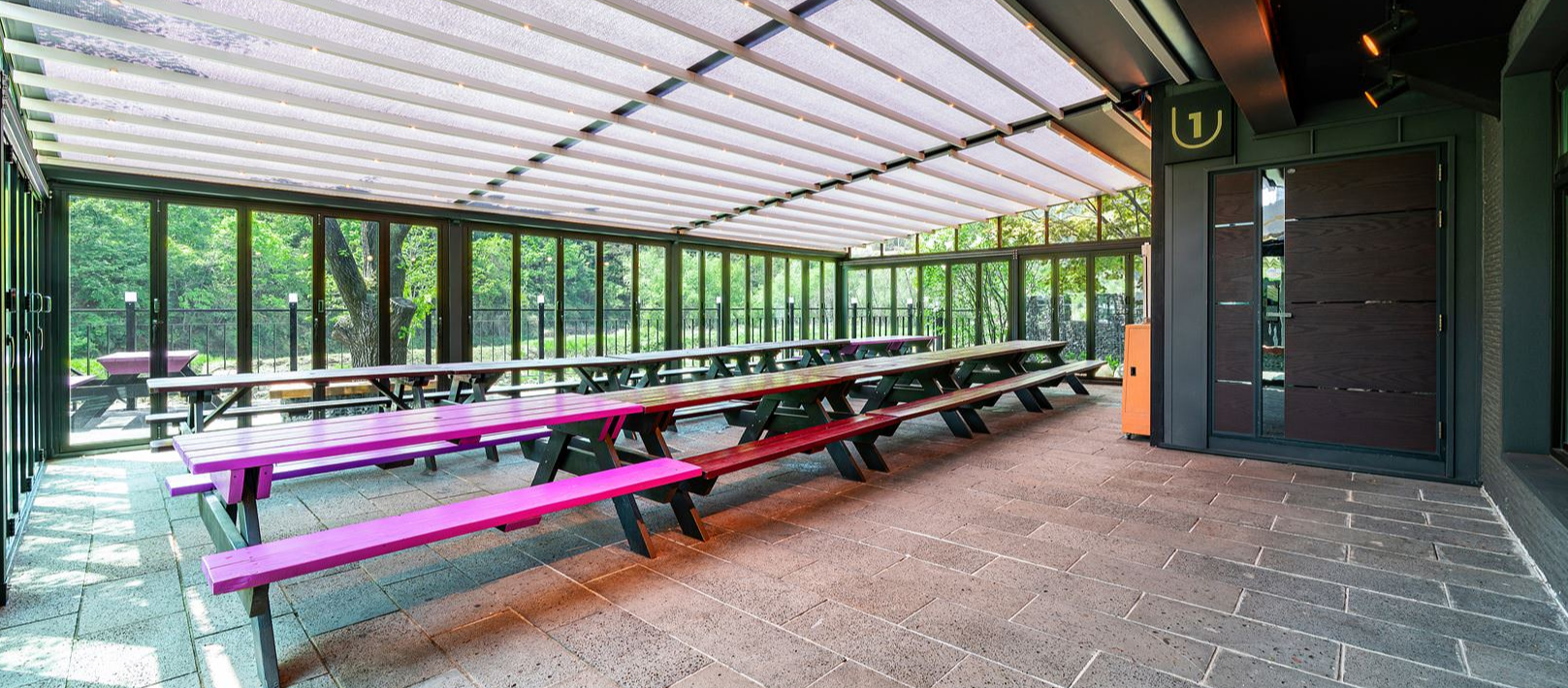1000명까지 수용 가능한 대형 야외 운동장과 무대형 정자가 있어 다양한 행사에 적합해요.