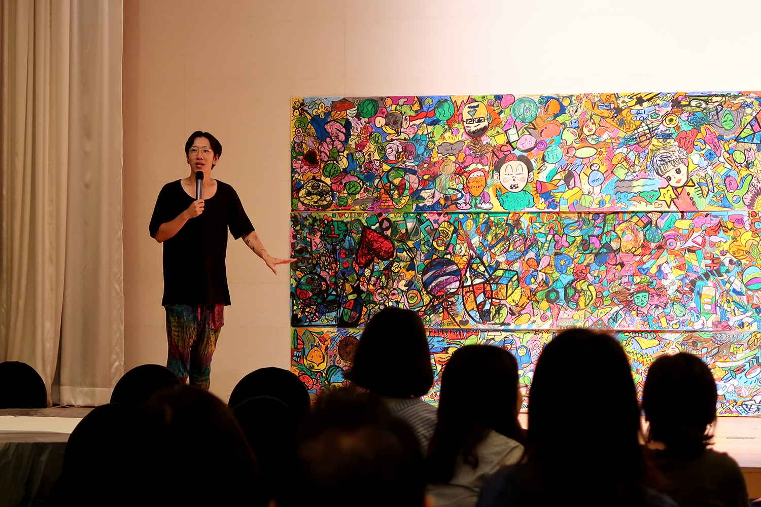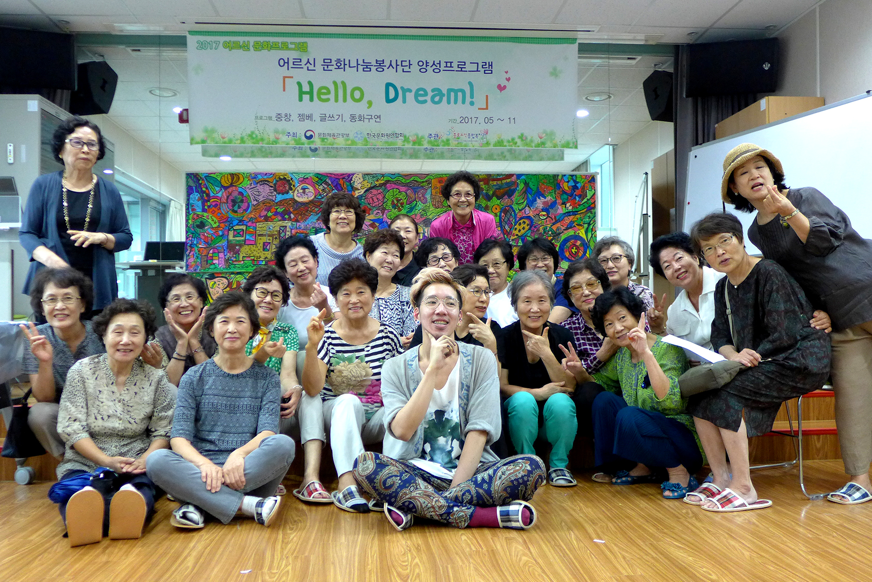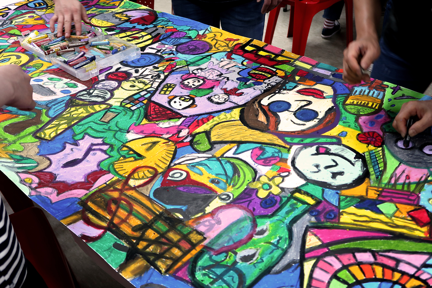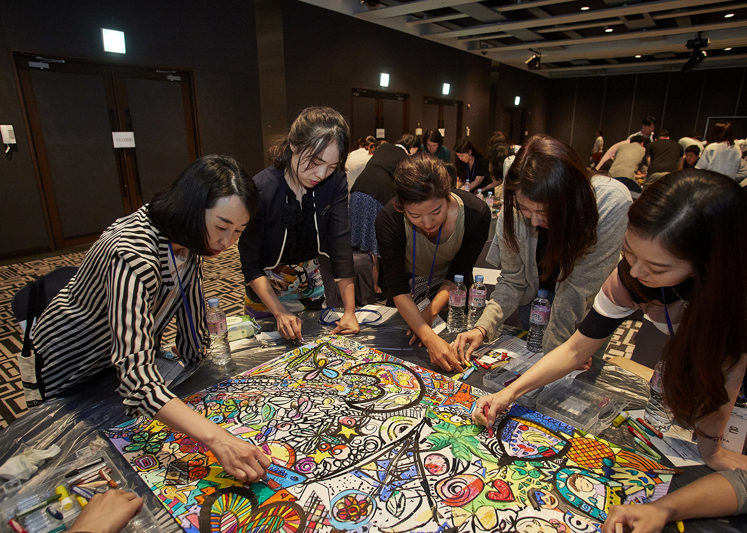 조별 활동이 아니라 전원이 돌아가며 이어 그려 하나의 대형 작품을 만들어요. 참여자 모두가 흔적을 남기고, 성취감을 공유할 수 있어요.