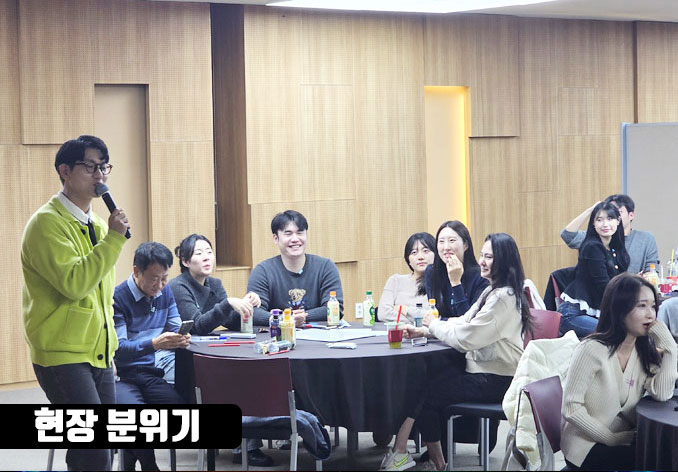 핵심가치를 주제로 여러 의견을 나누고, 최종적으로 팀별 작품을 완성해 전체와 공유하며 소통·동기부여를 얻어가요.