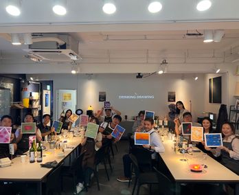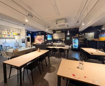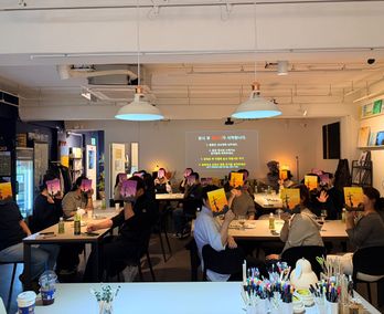 알콜, 논알콜 음료를 마시며 그림 작업을 할 수 있는 공간이며 클래스 없이 시간별 워크샵 대관도 가능합니다