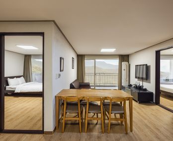 콘도형 객실 구조로 객실 내 거실에서 자연스러운 뒤풀이