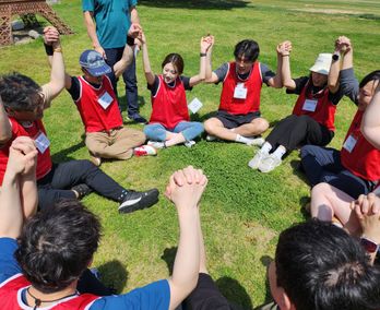 500명 규모 운동장에서 계절을 즐기며 팀빌딩 워크샵 진행