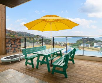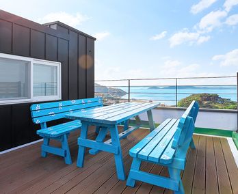 바다 전망의 야외 정원에서 산책과 미니 레크리에이션 모두 가능