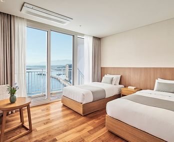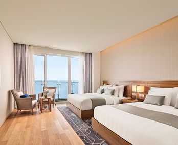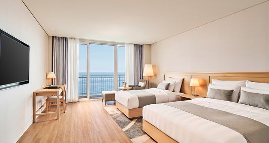 자연의 아늑한 분위기를 담은 디럭스 패밀리 트윈 룸으로 2~3인 투숙에 적합하며 파노라마 오션뷰를 감상할 수 있습니다.
