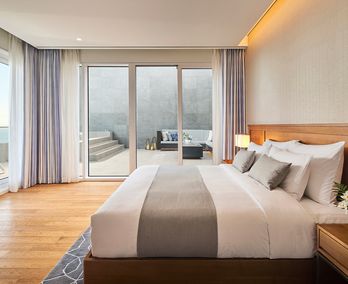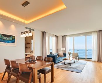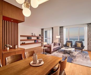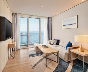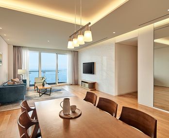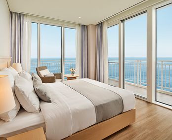 아늑한 침실과 고급스러운 인테리어, 넓은 다이닝룸으로 구성된 최고급 오션뷰 객실입니다.