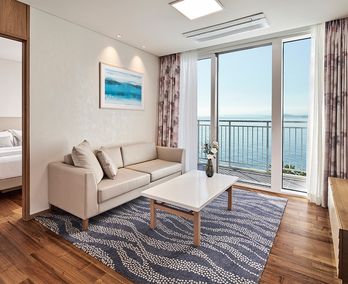 투룸과 거실로 구성 되었으며 넓은 테라스에서 오션뷰를 바라보며 편안하게 휴식할 수 있는 객실입니다.
