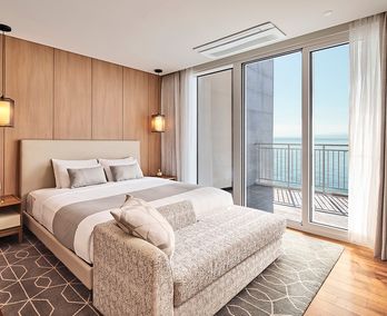 최고급 호텔 수준의 인테리어를 갖춘 품격있는 공간으로 간결하고 세련된 프라임 오션뷰 객실입니다.