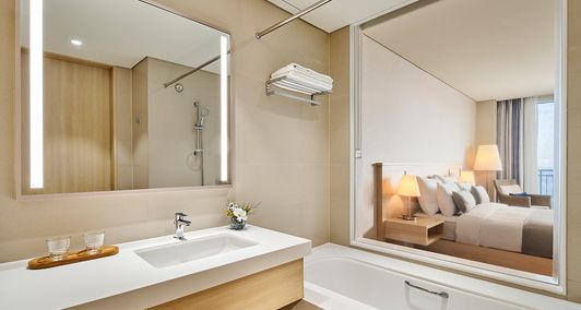 여유로운 공간, 세련된 분위기가 품격 있는 3인 투숙에 적합한 오션뷰 객실입니다.