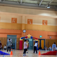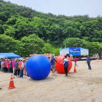 슈퍼볼 레이스슈퍼볼을 굴려서 반환점을 돌아 상대팀보다 빨리 돌아오는 팀이 승리