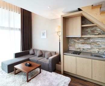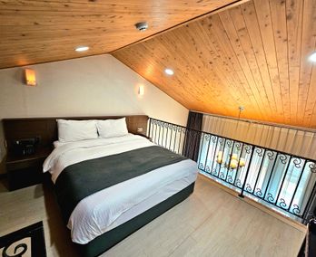 1층에 거실겸 주방 2층에 침실로 이루어진 복층형 객실 입니다.