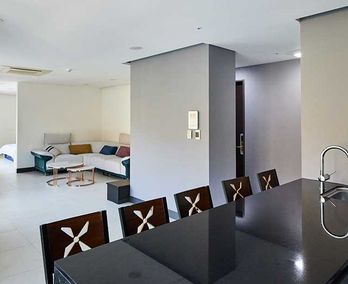 거실형 숙소에서 이야기 나누기 편한 분위기