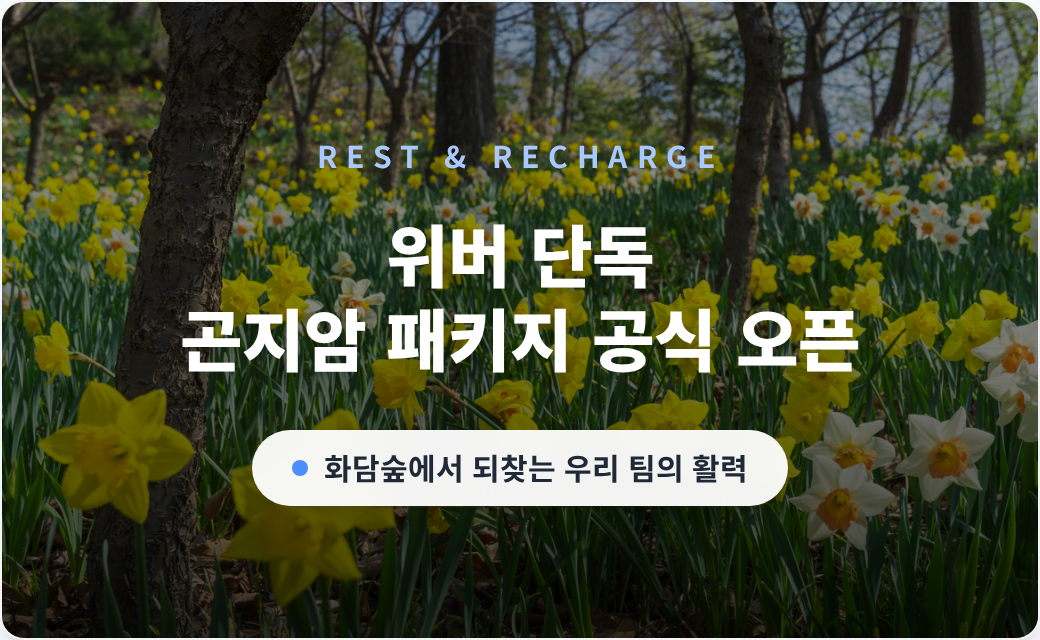 매번 워크샵 준비하며 이곳저곳 알아보고 컨택하기 힘들었는데 주변 갈 곳 추천부터 저희 일정에 맞게 세미나실 및 행사 진행까지 위버에서 알아봐주시고, 네고까지 진행해 주셔서 역대급으로 편하게 준비했습니다.