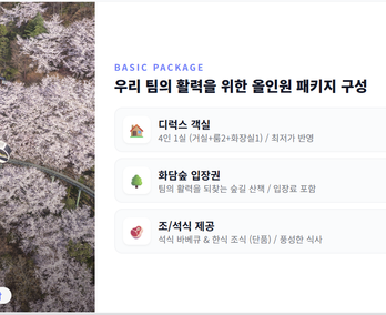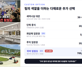 패키지 특가 커스텀 옵션 : 세미나실, 팀빌딩 프로그램, 루지, 화담채(화담숲 내)