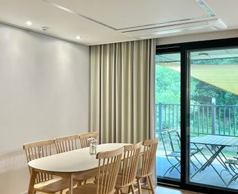 1층에 수영장이 달려 있으며 독채 건물이 아닌 한층을 사용하는 객실입니다.