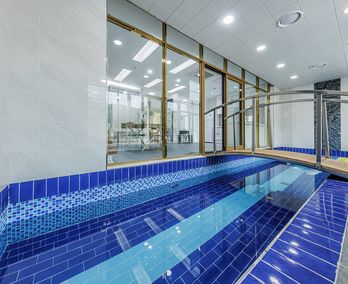 1층 : 거실 + 주방 + 더블1 + 화장실1 + 실내개별수영장 + 바베큐장 / 2층 : 침대룸1(더블1+화장실1) + 침대룸1(거실+더블2+화장실1)