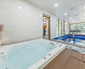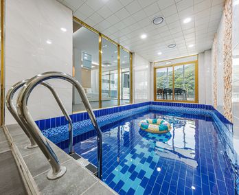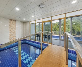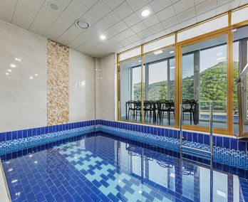 실내 공간 : 독채(복층), 객실7개, 침대 13개, 화장실 4개 / 단독사용 외부공간: 야외수영장, 세미나실 겸 바베큐장, 테라스, 레크레이션 공간 /노래 및 음향기기 : 15시~22시 / 야외 온수수영장(길이 약 7미터) : 사전예약 필수
