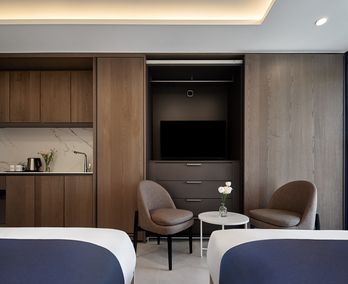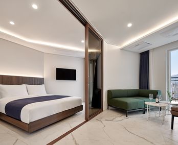 어메니티: 샤워부스, 헤어드라이어, Bath Amenity, 비데 / 객실 편의시설: Wifi, 에어컨, 난방, 업무용 책상, TV, 암막커튼, 개인 금고, 냉장고, 전기 주전자, 무료 생수, 무료 커피&티, 에어드레서, 와인셀러, 전기오븐, 세탁기