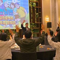 6) 랜덤 2종 게임 거꾸로 말해요(팀원 들이제시어를 한 글자씩 거꾸로 말하면 성공), 세 글자 만들기(사회자가 말하는 첫 글자를 이어 3 글자를 만들어야 성공)
