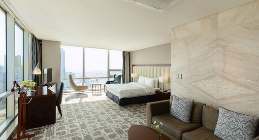 탁 트인 도심 전망을 갖춘 객실로 숙박 만족도 강화