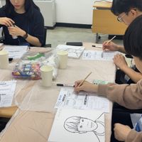 인물채색 & 캘리그라피얼굴 및 디테일 색상 채우기 팝아트 특유의 감각적인 톤 가이드 제공 캘리그라퍼 강사님이 순회하며 참가자들의 비전 문구를 직접 작성